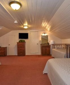 The first bedroom has two queen beds, a daybed with trundle, a full bathroom and 32″ flat screen television