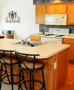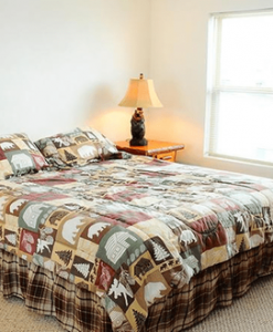 MULTI LEVEL and offers INTERNET ACCESS. Villages 4 bedroom has a SILVER RATING and SLEEPS TEN. You’ll find the LIVING ROOM featuring a FLAT SCREEN HDTV/DVD and a GAS FIREPLACE. The fully functional KITCHEN has a breakfast bar and three stools and the DINING ROOM seats six. The main level bedroom features a QUEEN bed, a FLAT SCREEN TV and a FULL BATH. Upstairs is the second bedroom also offering a QUEEN bed and a FLAT SCREEN TV and a FULL BATH, while the third bedroom has TWO SETS of beds, a FLAT SCREEN TV and a FULL BATH. The fourth bedroom has a KING bed, a FLAT SCREEN TV and a FULL BATH. Relax on the DECK with a grand view of the mountains. The Villages are conveniently located in the Villages at the top of the mountain. All homes have a washer and dryer, iron and ironing board, expanded cable, dishwasher, bed and bath linens, and kitchens with utensils, cookware and flatware. In the summer there is an outdoor pool, tennis and basketball courts. As in all areas of the resort, shuttle service is available twenty-four hours a day for guest convenience.