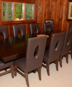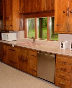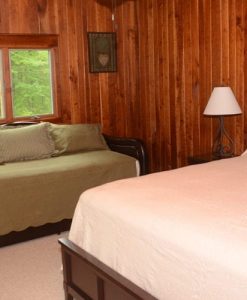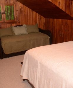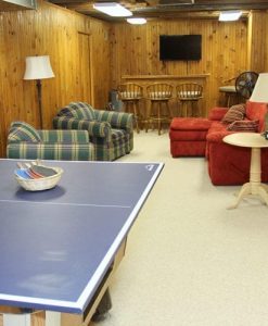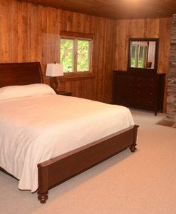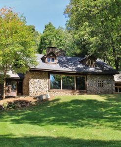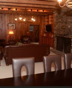 Boasting a large open living and dining room with a wood burning fireplace, five bedrooms, three bathrooms, patio with seating and built-in charcoal grill and a fire ring where the group can gather in the evenings.