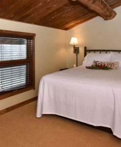 One bedroom with two twin beds and a 42″ television