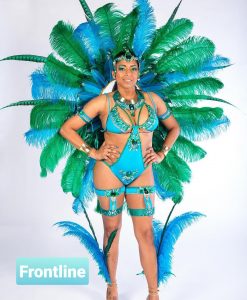 Costume shown is representative of final costume to be revealed at Toronto Reveler’s band launch in Toronto, TBD. Costume will be Tiffany Blue and silver with silver bling (jewels). Costume price is discounted prior to April 1. Only 10 Front line costumes available!